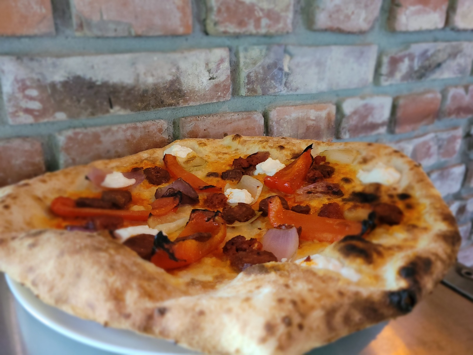Pizza w której główną rolę gra tuńczyk. Pozostałe składniki to mozzarella julienne, pecorino romano, rucola